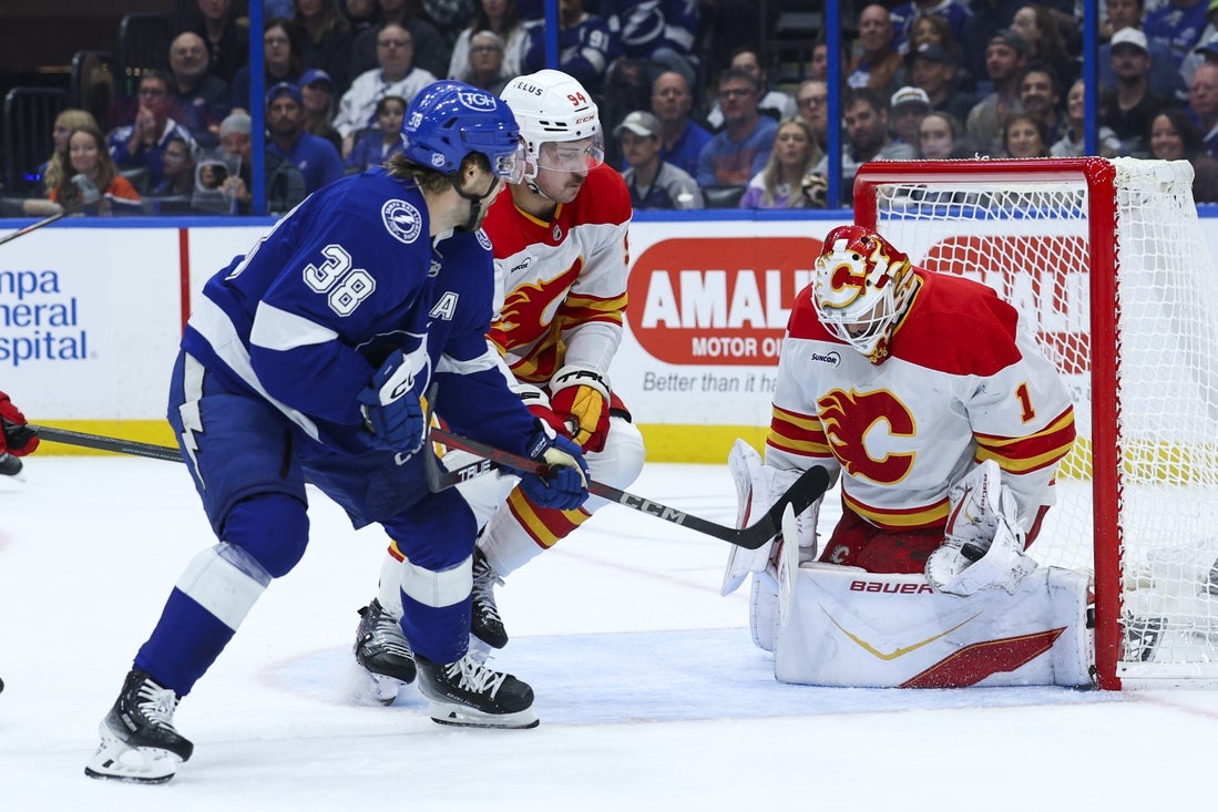 The second period was filled with power-play chances, but the Flames failed to produce after Kucherov committed a double-minor high-sticking infraction. The Lightning could not score on their four man-advantage opportunities in the period.