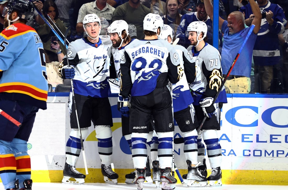 During a scramble with Bobrovsky down and unable to get up, Sergachev fired in his fifth goal into an open net as the Lightning scored twice in 4:19. Florida challenged unsuccessfully for goaltender interference on the tally.