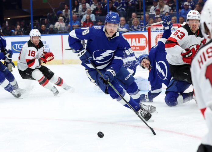 Brandon Hagel and Brayden Point scored two goals apiece, defenseman Victor Hedman achieved an offensive milestone, and the Tampa Bay Lightning beat the New Jersey Devils 6-3 for their seventh straight home win on Saturday night.