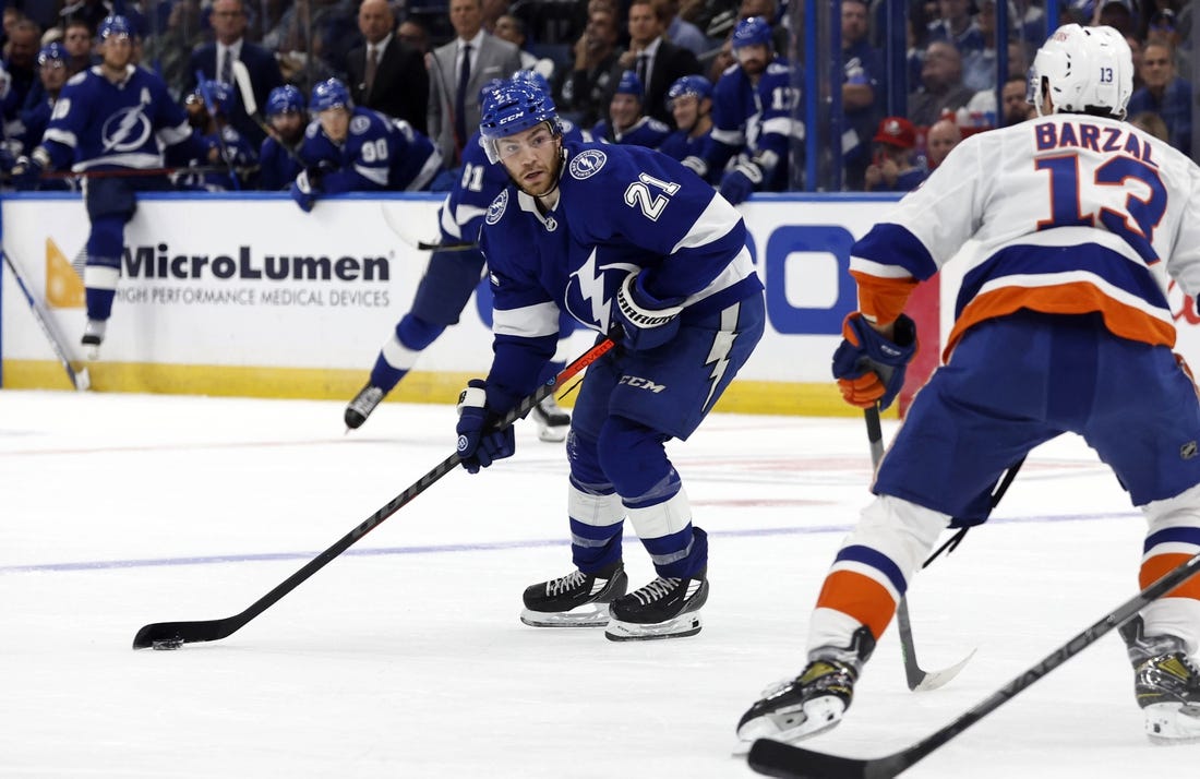 Stamkos ended Sorokin’s night with 8:15 left when a pass from Darren Raddysh glanced off Stamkos’ foot as he battled for position with Samuel Bolduc, and Stamkos fluttered the puck past the Islanders’ goalie.