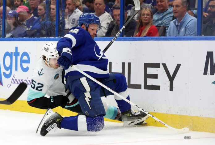 Tampa Bay did eventually get very brief possession of the puck — evoking sarcastic cheers from the home crowd — but Jared McCann silenced them at 2:53 as he one-timed a power-play game-winner, with Seattle generating all five overtime shots on goal.