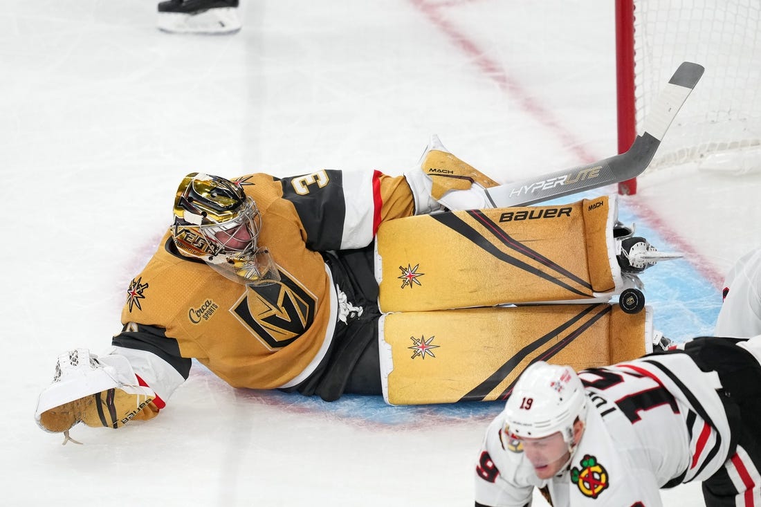 Chicago pulled Stalock for an extra attacker with 1:47 remaining, and the Golden Knights had a chance to seal it with 1:10 to go, but Jack Eichel’s shot from the right side went wide of the net. Thompson then turned away shots by Athanasiou and Jonathan Toews to close out the win.