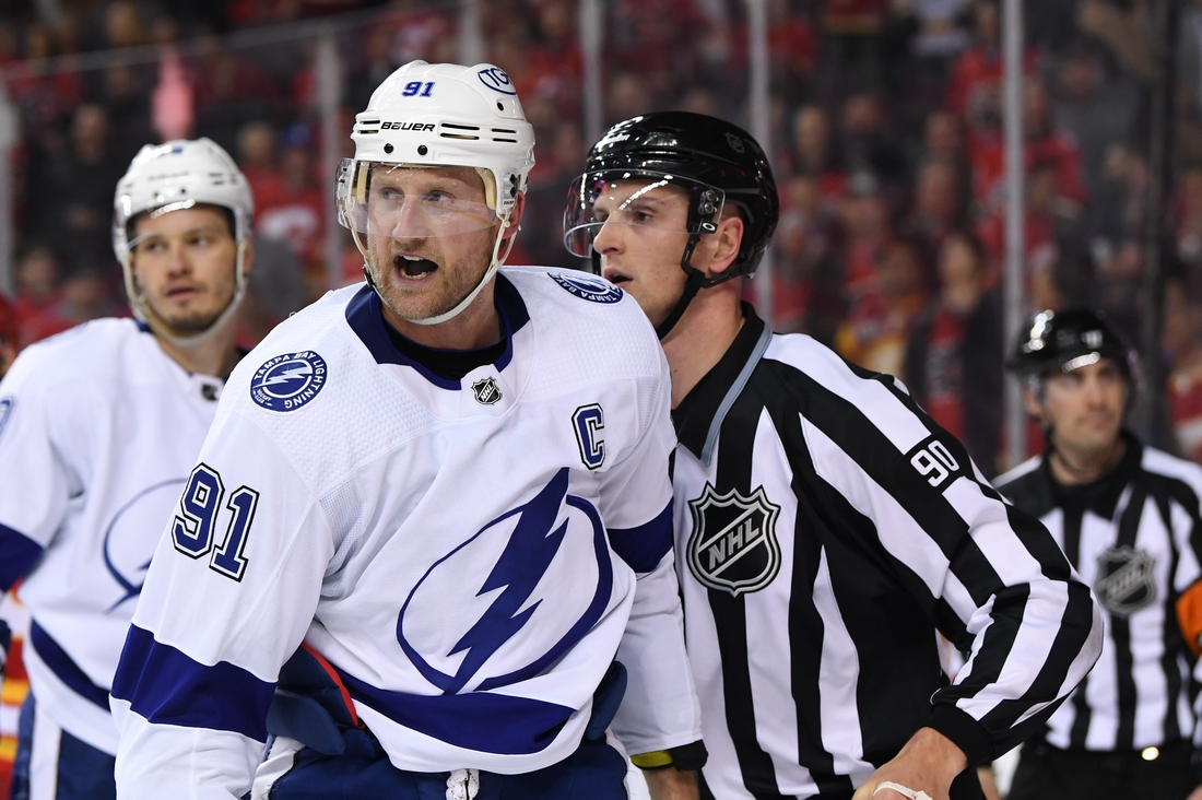 The two-time defending Stanley Cup champions, began a six-game road trip with a 6-3 win at Chicago on Sunday, but then lost 7-4 at Winnipeg on Tuesday and 4-1 to Pacific Division-leading Calgary on Thursday. That marked the first time in 57 games this season that the Lightning have lost back-to-back games in regulation.