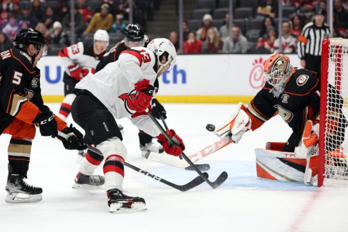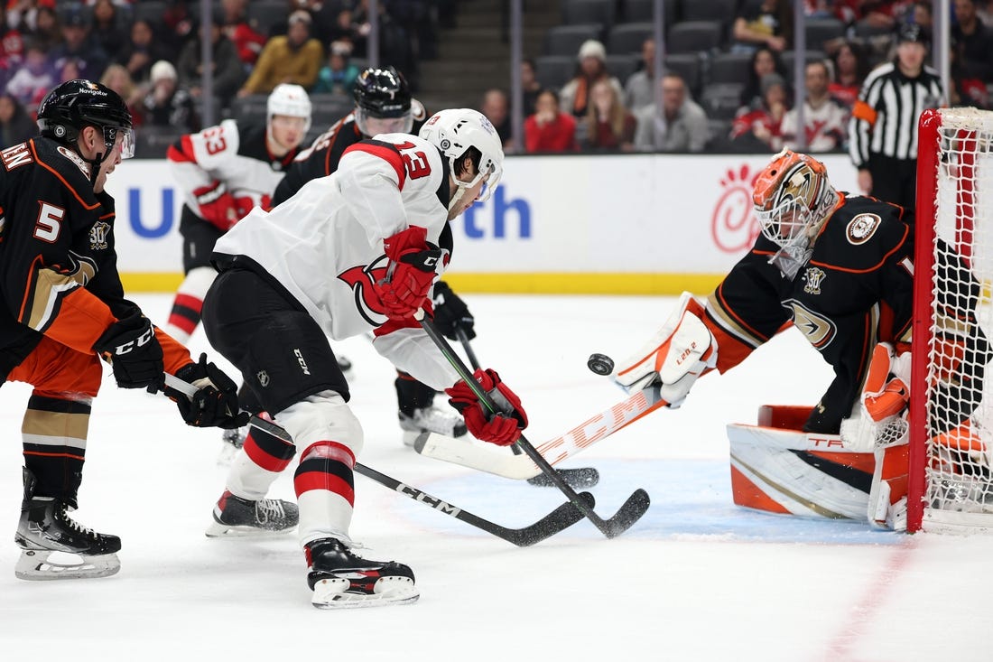 After Jones made it a 3-1 Anaheim lead at 13:47 of the second period thanks to a nifty redirect from the slot of a point shot for his fifth of the season, Hughes pulled the Devils within one 100 seconds later with a power-play goal, his 20th marker of the season.