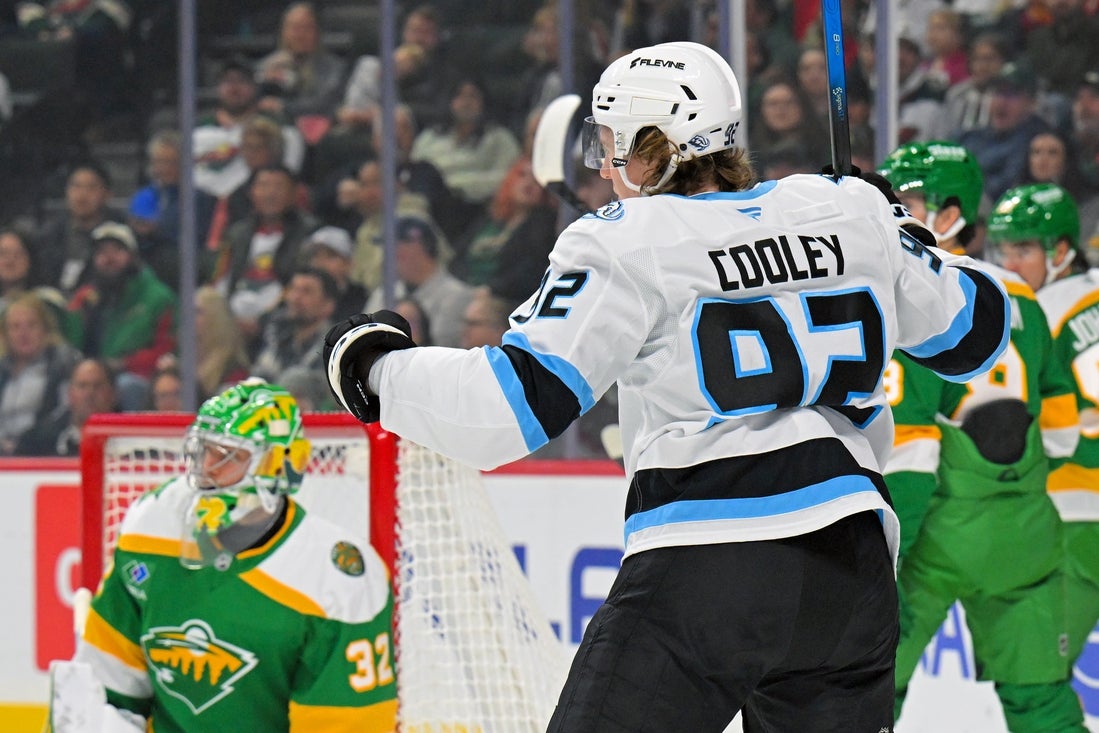 JJ Peterka and John Marino also scored for Utah, which won its sixth game in a row. Cooley (two goals, one assist) and Marino (one goal, two assists) each finished with three points.