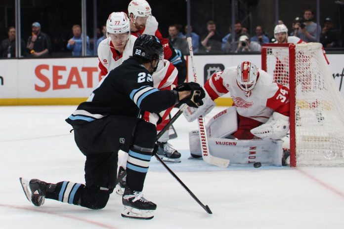 The 6-foot-4, 219-pounder has tallied 82 points in 241 regular-season games with Utah and the Arizona Coyotes since being selected in the third round of the 2018 draft by the Minnesota Wild.