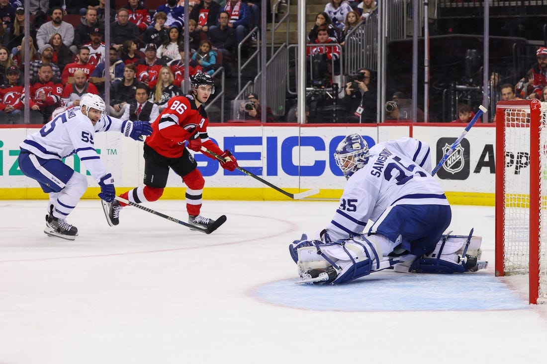 New Jersey went on the power play again at 4:03 of the third when Nylander was penalized for slashing. Marner scored his 23rd goal of the season at 4:51 while killing the penalty.