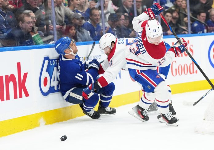 Toronto’s Max Pacioretty (left leg) left the game late in the first period and was helped to the dressing room. He did not return. Montreal had only two shots on the goal in the opening period while Toronto took seven.