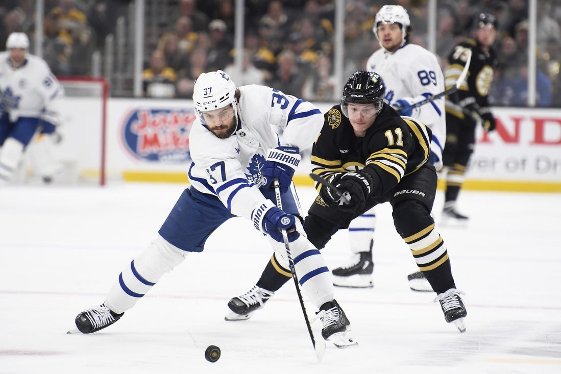 After John Tavares drove toward the net, a loose puck popped off the pads of Boston goaltender Jeremy Swayman and went to Knies, who potted it after charging down the slot.