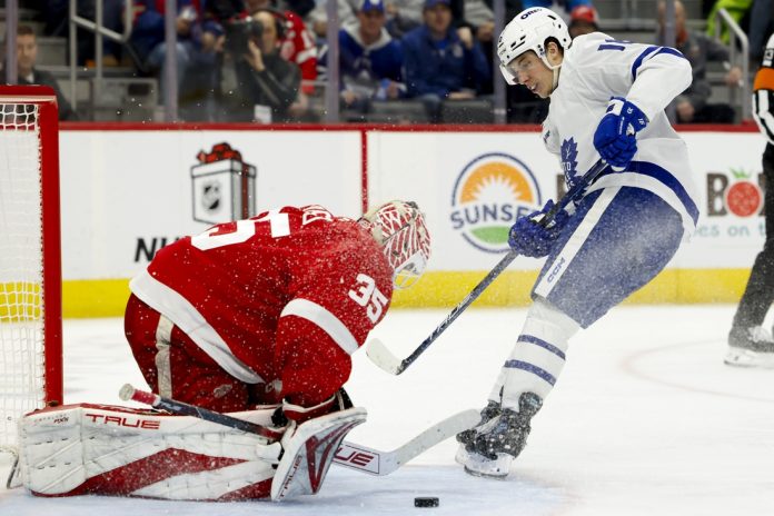Mitchell Marner had two assists with captain Auston Matthews and Matthew Knies each scoring a goal for Toronto.