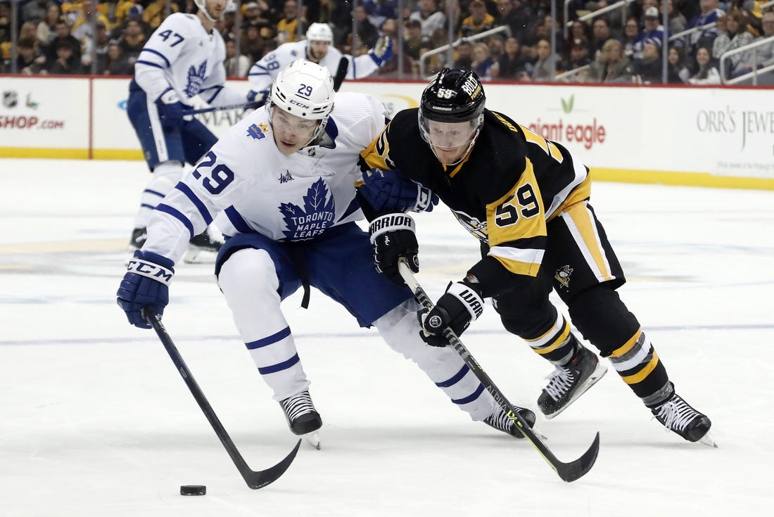 With Pittsburgh making a line change, Matthews set up Marner for an open look near the left point. Marner moved in, swept across the top of the slot and beat DeSmith inside the far post 40 seconds into the first for a 1-0 Maple Leafs lead.