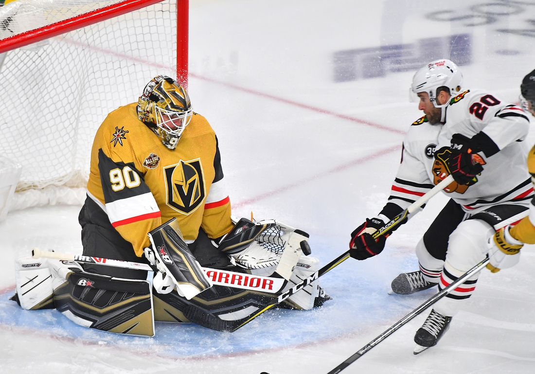 Jujhar Khaira and Riley Stillman scored goals for Chicago. It was just the second time in 10 games all-time (8-2-0) that the Golden Knights lost to the Blackhawks. It also snapped Vegas’ 28-game streak of scoring at least two goals in a contest.