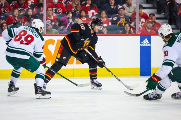 Backlund put the hosts on the board at 6:51 of the second by deflecting MacKenzie Weegar’s point shot for his sixth goal of the season, but Boldy’s power-play goal at 13:58 of the period, a nifty redirection from the slot, restored Minnesota’s three-goal edge.