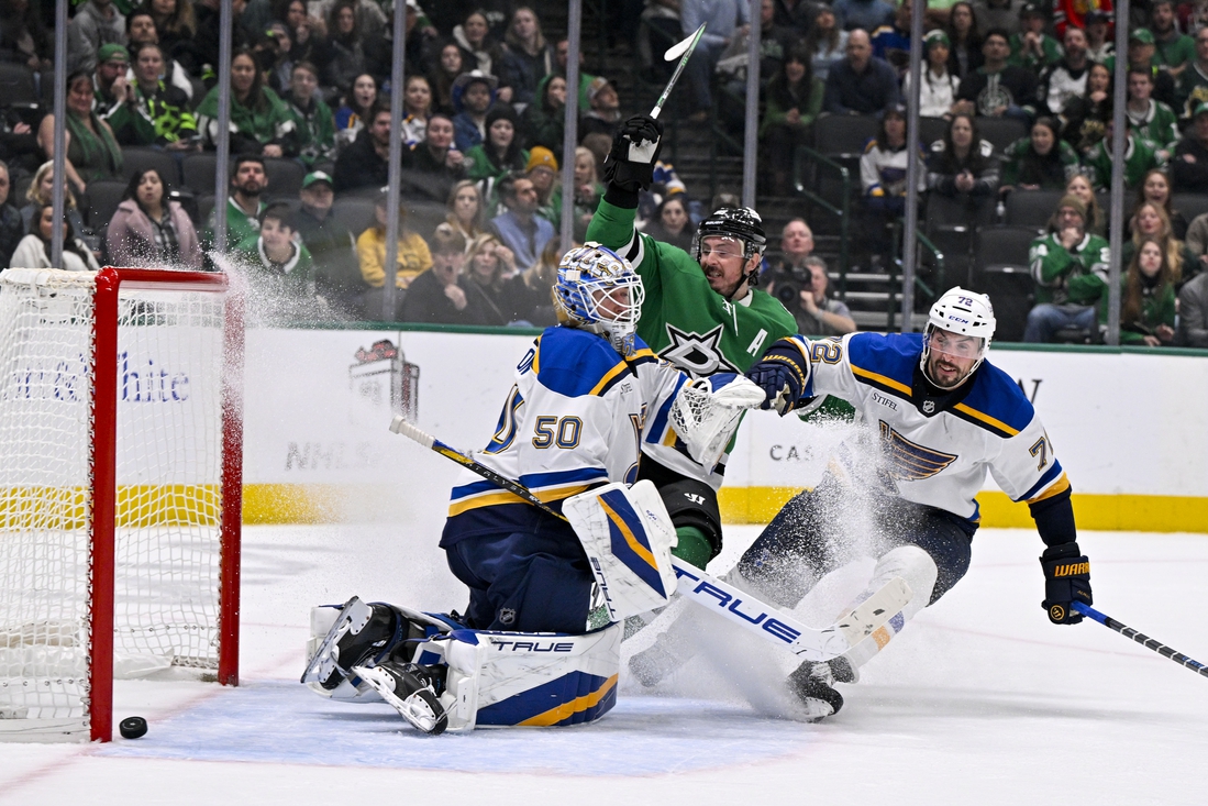 Dallas played with purpose in the second period while building a 14-3 shots advantage. Binnington had to make early saves on Logan Stankoven and Esa Lindell.