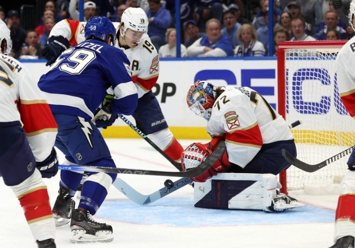 Florida went up 3-1 at 4:41 of the second on a goal by Schmidt, who swooped in for a tally after Eetu Luostarinen battled at the top of the crease with Vasilevskiy. Lightning coach Jon Cooper challenged for goalie interference, but the marker stood.