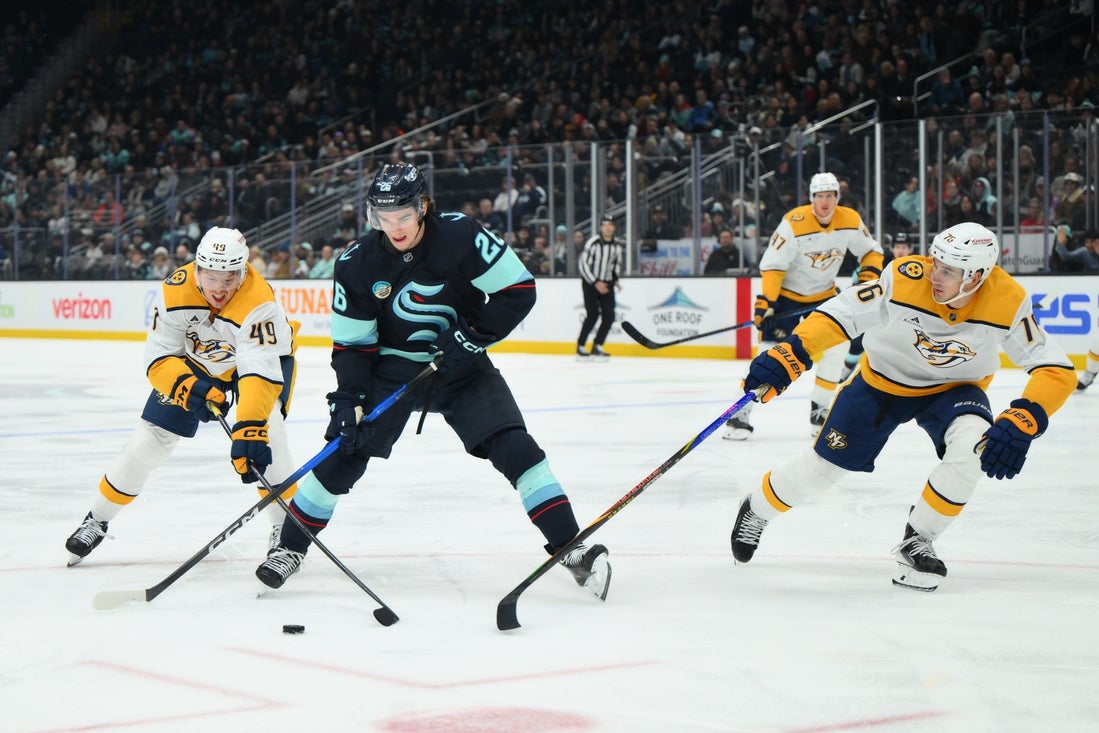 Jamie Oleksiak and Jared McCann also scored for Seattle, which extended its point streak to six games (5-0-1).
