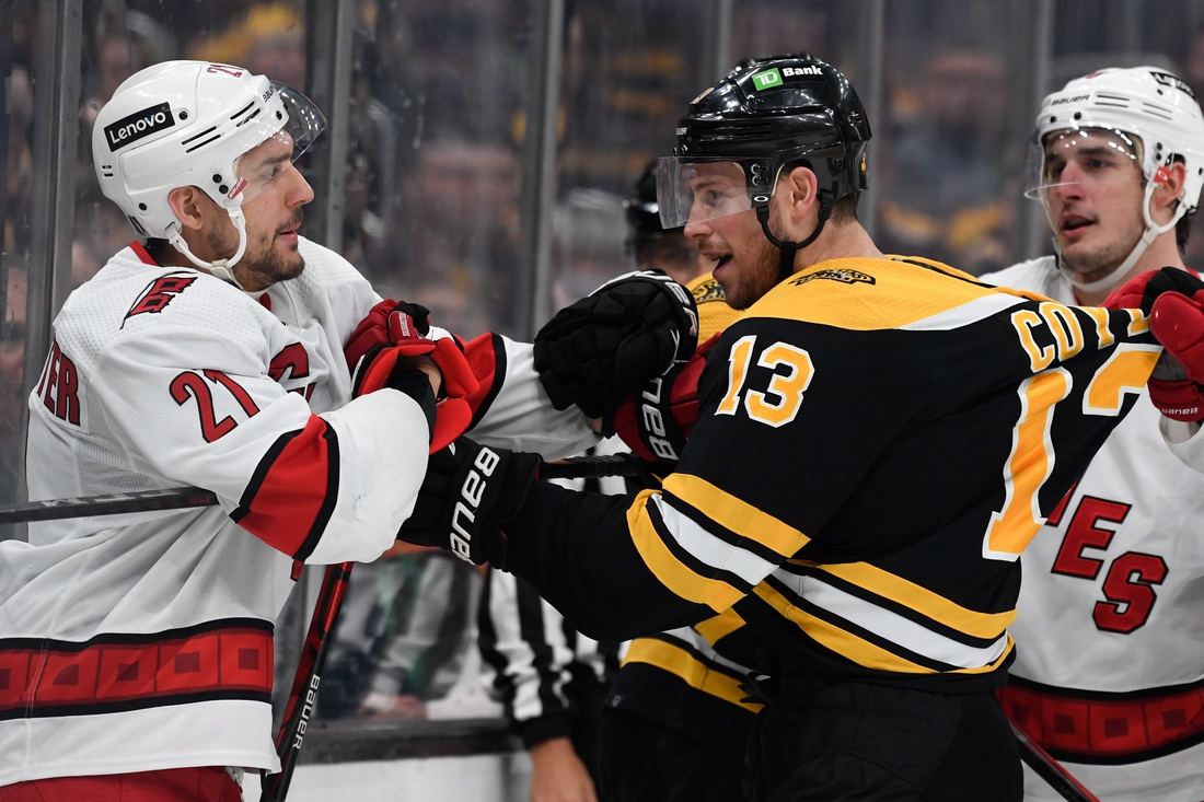 Max Domi had two goals and an assist to help the Carolina Hurricanes fend off and eliminate the visiting Boston Bruins with a 3-2 win in Game 7 of their first-round series on Saturday.