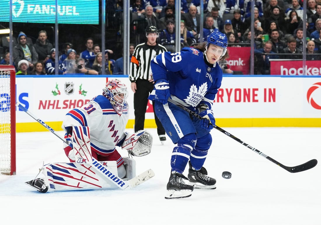 After beating two Rangers to the puck, Marner lost control of it before he recovered to score his 24th goal of the season at 3:54 of the second period. Trocheck answered at 5:03 with his 21st of the season on a precise pass from Lafreniere, who had faked a shot. Nylander tied the game at 8:54 of the second when his 62-foot shot was deflected by a Rangers player.