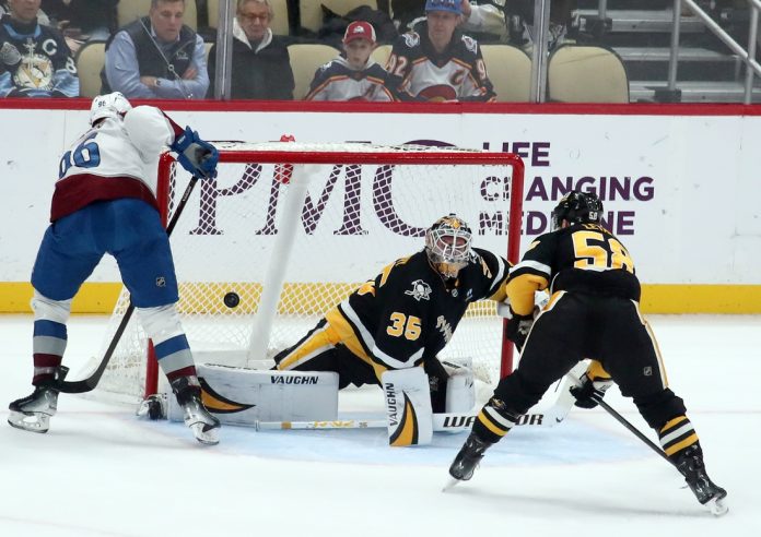 Valeri Nichushkin took the puck down the right side and cut around Pittsburgh defenseman Marcus Pettersson to the front of the net, then slid the puck by Jarry’s right skate for a 4-2 lead at 3:23 of the third.
