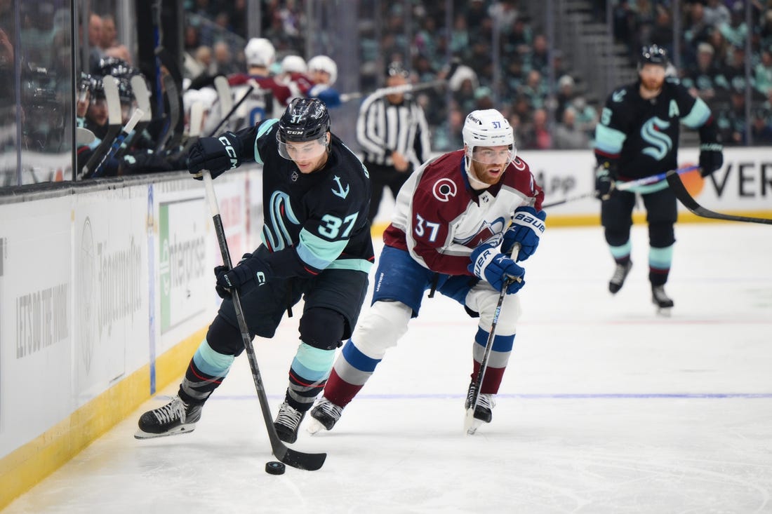 Colorado forward Andrew Cogliano returned from injury, but Valeri Nichushkin was taken from the lineup due to injury. Seattle’s Morgan Geekie missed the game because his wife had gone into labor.