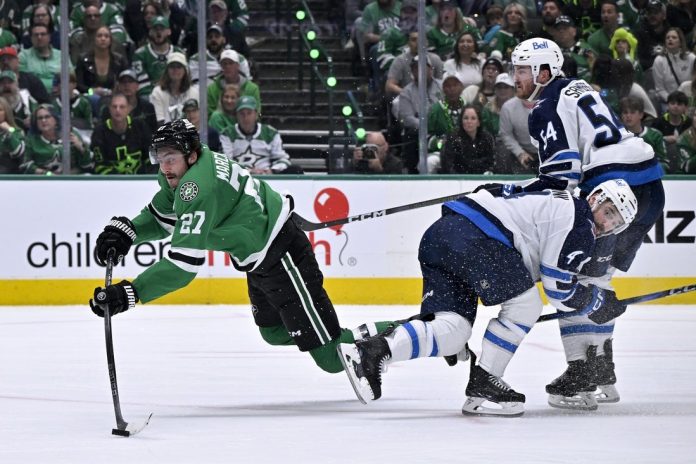 Third-period goals 49 seconds apart by Alexander Petrovic and Mikko Rantanen sparked the host Dallas Stars to a 5-2 victory over the Winnipeg Jets in Sunday’s Game 3 of their Stanley Cup playoff series.