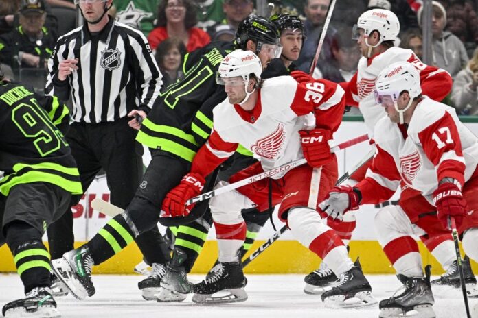 The Red Wings played without co-points leader Dylan Larkin, who sustained an upper-body injury in a 5-1 loss to the Ottawa Senators on Saturday.