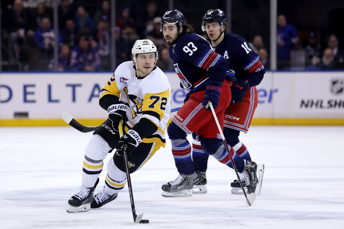 Pittsburgh’s Blake Lizotte scored early in the second period to make it 1-1, and after New York went up 2-1, Rickard Rakell and Tomasino each had a goal, both assisted by Bryan Rust, to give Pittsburgh a lead it never relinquished.