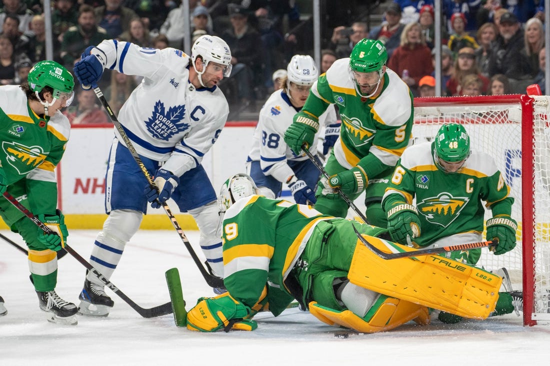 Marner scored his fifth goal of the season on a 57-foot shot that deflected off a Wild player at 3:42 of the first period. Timothy Liljegren and Tavares had assists.