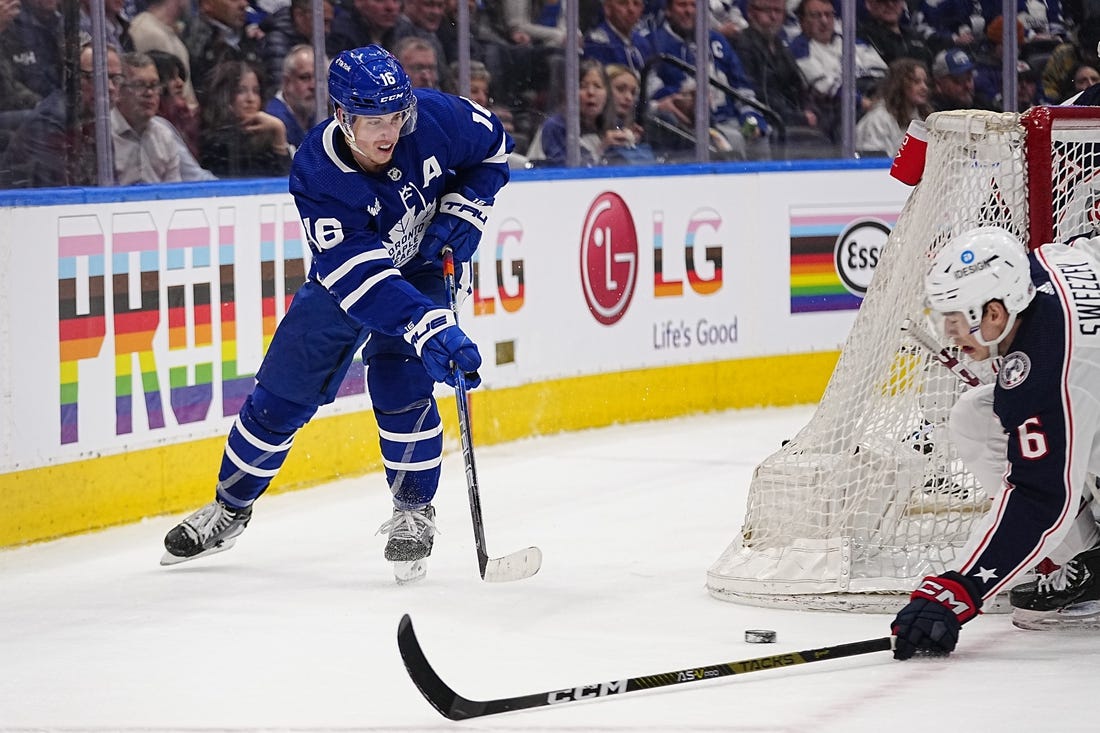 Marner worked a give-and-go with Matthews during a power play to open the scoring at 9:08 of the first period. Justin Barron was off for high-sticking.