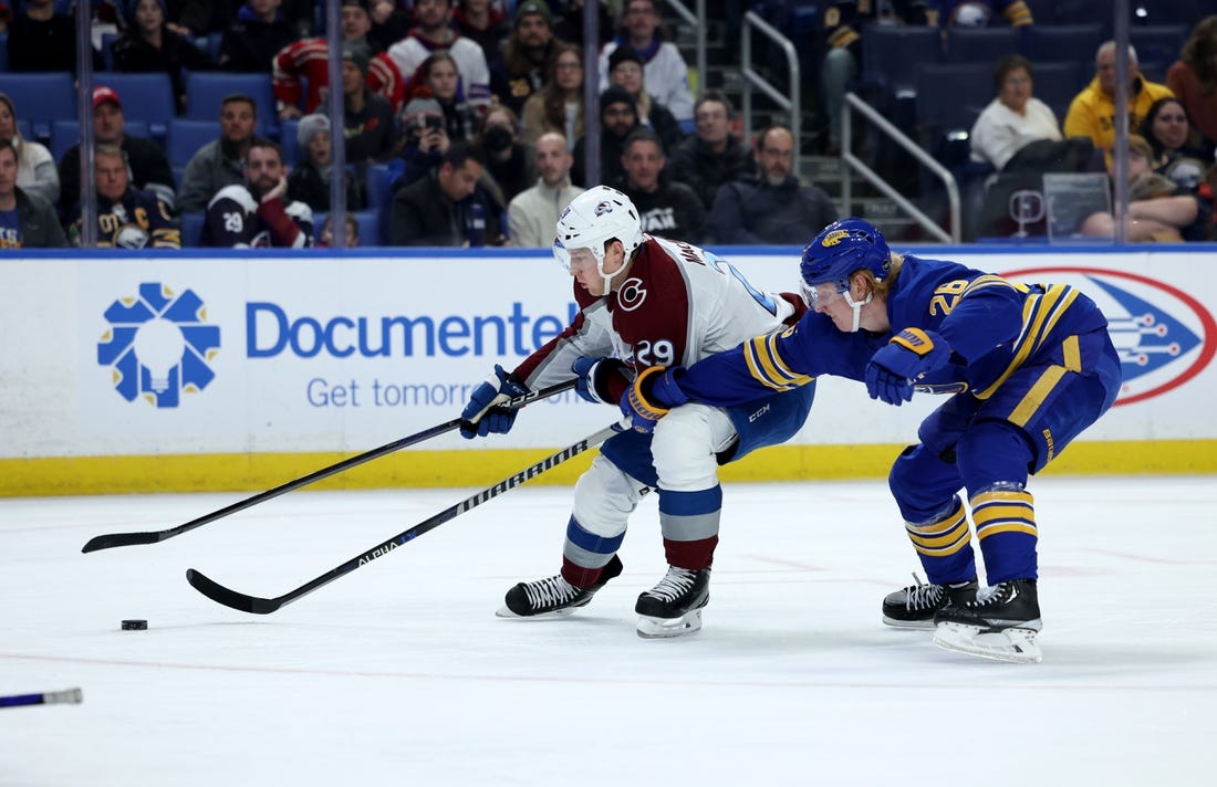 The Avs, though, tied, then took the lead with 10:11 remaining in the second period. Working with a 5-on-3 advantage, MacKinnon drilled the puck by Sabres netminder Ukko-Pekka Luukkonen (28 saves) to level with 11:00 minutes to play in the middle frame.