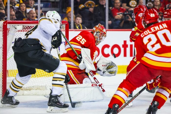 Oliver Kylington and Martin Pospisil also scored for the Flames, who won their second consecutive outing. Goaltender Jacob Markstrom made 31 saves, three in overtime – including a great stop on David Pastrnak seconds before the winner.