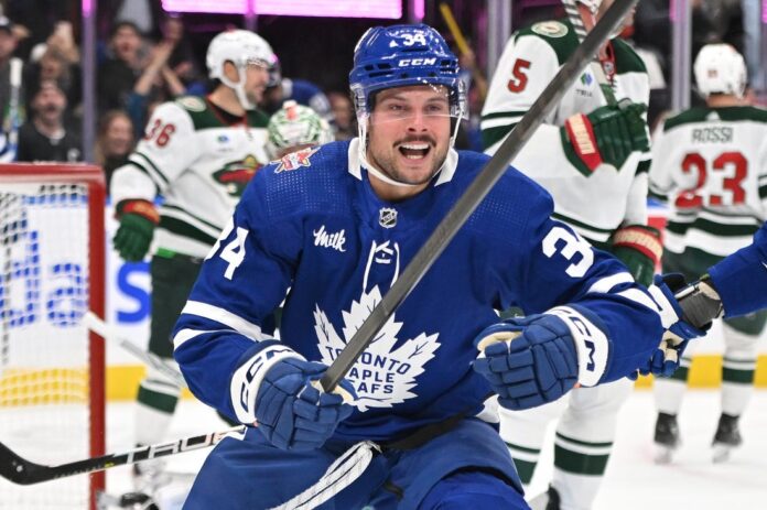 Auston Matthews scored three goals for the second straight game and the Toronto Maple Leafs defeated the visiting Minnesota Wild 7-4 on Saturday night.