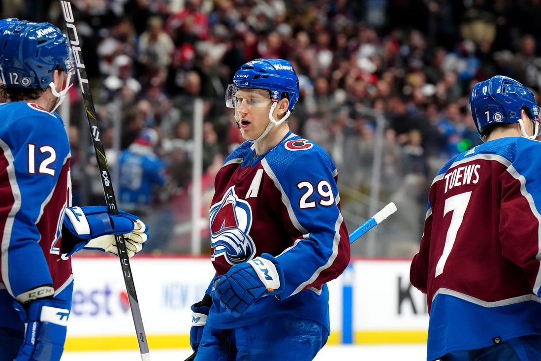 MacKinnon had a natural in the second period and matched his career-best, single-game goal total. He has recorded at least one point in all 24 Colorado home games, breaking a tie with Joe Sakic (2000-01) for the longest home point streak in franchise history. MacKinnon’s second straight four-plus-point game gave him the NHL scoring lead with 82 points.
