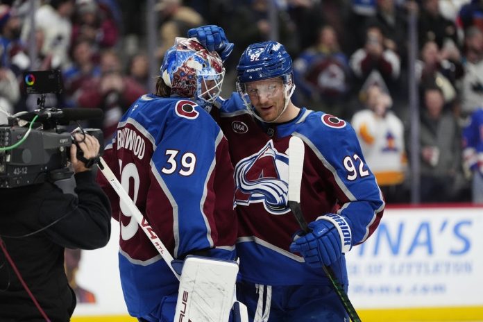 Nathan MacKinnon and Artturi Lehkonen had a goal and an assist each, Ross Colton and Sam Malinski also scored and Martin Necas added two assists for Colorado, which has taken only one regulation loss in its first 23 games (17-1-5). The Avalanche’s 10-game winning streak is tied for the second longest in franchise history.