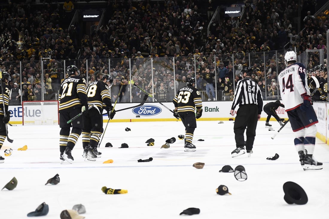 Brad Marchand scored a natural hat trick in the third period as the Boston Bruins came from behind to defeat the visiting Columbus Blue Jackets 3-1 on Sunday night.