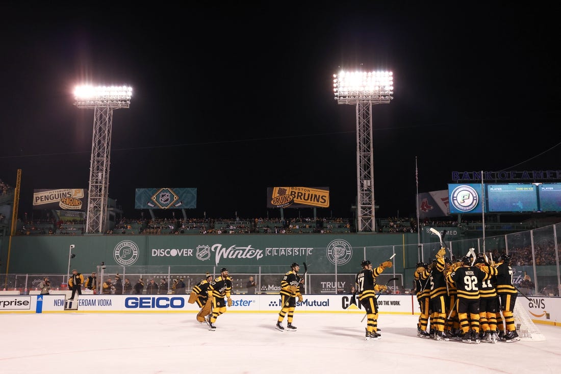 Jake DeBrusk scored a pair of third-period goals to lead the Boston Bruins to a 2-1 win over the visiting Pittsburgh Penguins on Monday afternoon in the NHL Winter Classic at Fenway Park.