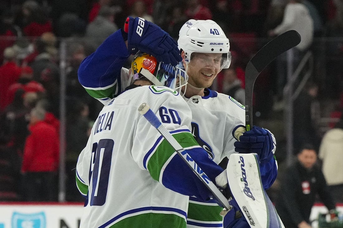 Elias Pettersson converted on the last attempt of a shootout to allow the Vancouver Canucks to salvage the last game of a road trip with a 4-3 victory against the Carolina Hurricanes on Sunday at Raleigh, N.C.