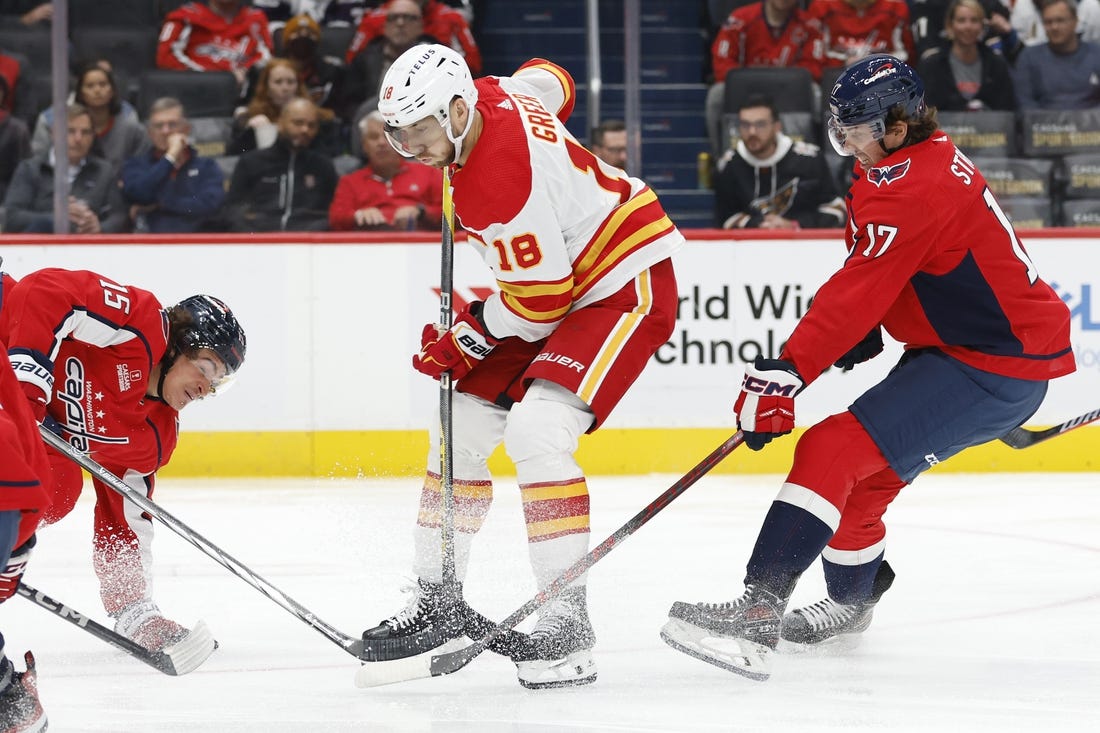 Former Flames forward Matthew Phillips notched a goal and an assist, and Connor McMichael also scored for the Capitals. Goalie Darcy Kuemper made 38 saves through overtime. In the shootout, he stopped Jonathan Huberdeau’s offering, while Yegor Sharangovich and Nazem Kadri hit iron.