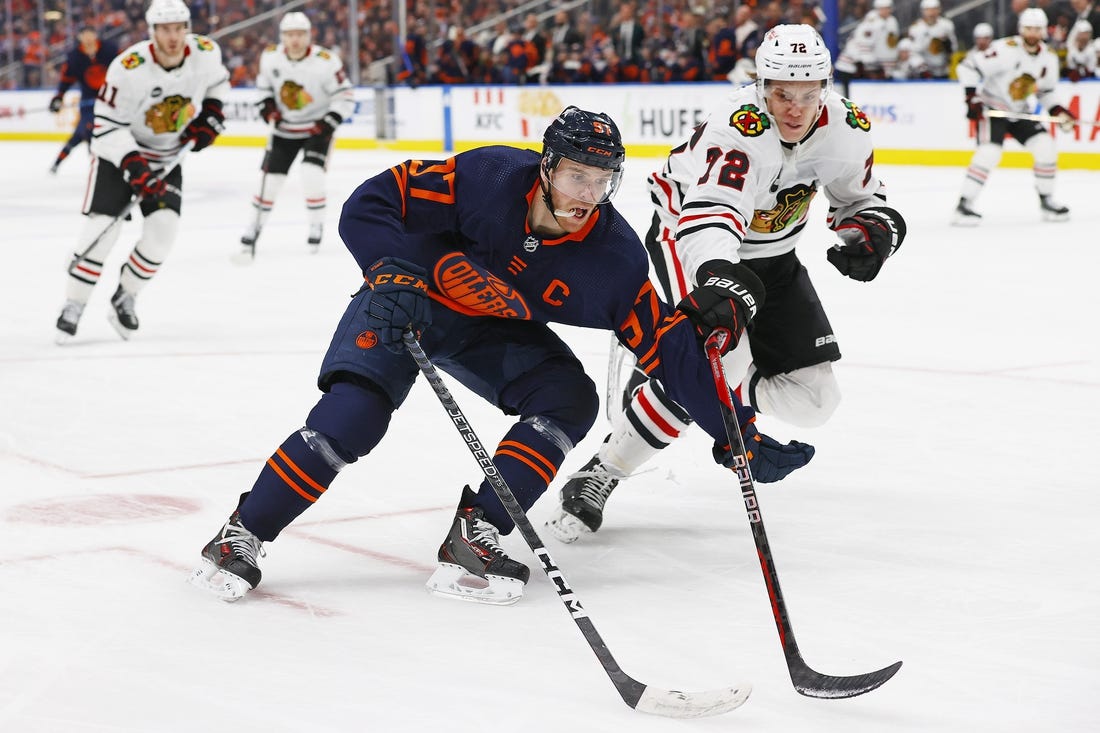 Connor McDavid scored two goals and had an assist and backup goalie Calvin Pickard stopped 27 shots, including a penalty shot for his first shutout of the season, as the Edmonton Oilers extended their franchise-record win streak to 15 games with a 3-0 victory over the visiting Chicago Blackhawks on Thursday night.