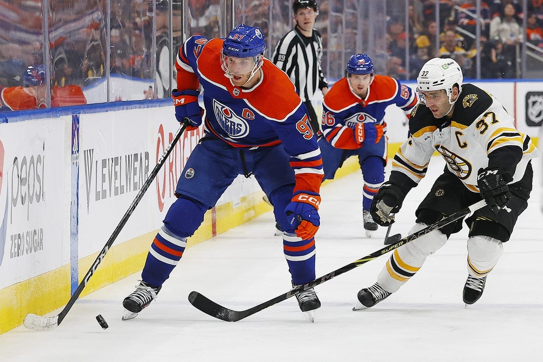 Pavel Zacha scored a tiebreaking goal in the final minute of the second period, and the Boston Bruins held on to beat the host Edmonton Oilers 3-2 on Monday night.