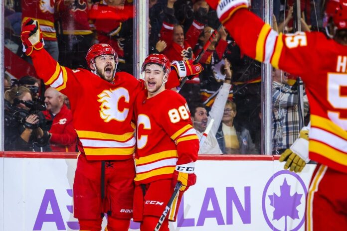 A.J. Greer also scored for the Flames, who received a scintillating 27-save performance from goaltender Dan Vladar.