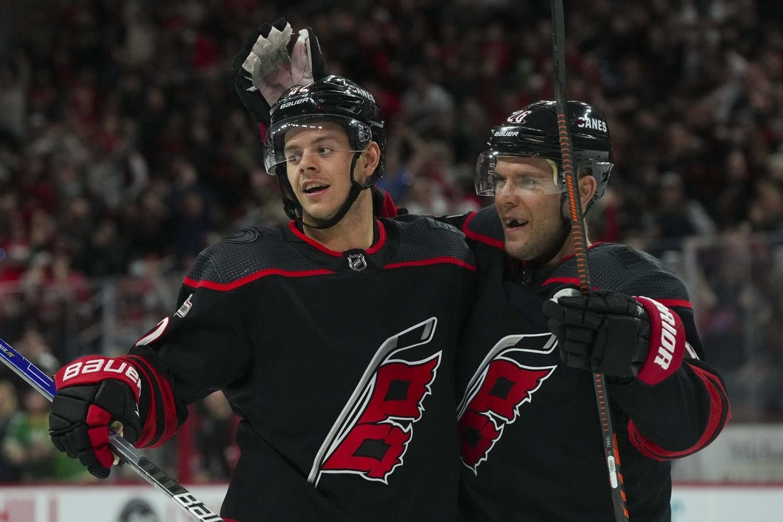 The first three Carolina goals came on power plays before Jesperi Kotkaniemi added a third-period goal. Brent Burns and Seth Jarvis each assisted on two goals.