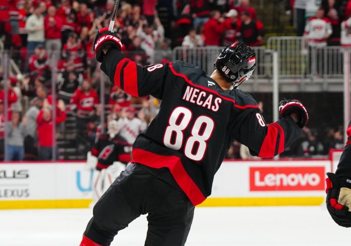 Necas delivered his seventh goal of the season as the Hurricanes stretched their league-best active winning streak to seven games. Combined with an earlier assist, he has 20 points in the past 10 games.