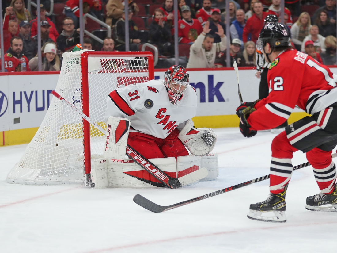 After falling behind 3-1 with 11:36 remaining in the second period, the Hurricanes responded with three unanswered goals. Martin Necas netted the game-winner for Carolina at 3:26 of the third period, sneaking one past Chicago goaltender Marc-Andre Fleury, who allowed the puck to trickle out of his control.