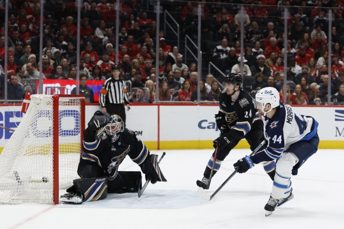 Defenseman Josh Morrissey capped a two-goal performance by scoring 1:57 into overtime, lifting the Winnipeg Jets to a 5-4 victory over the Washington Capitals on Saturday in a battle of the NHL’s two top teams.