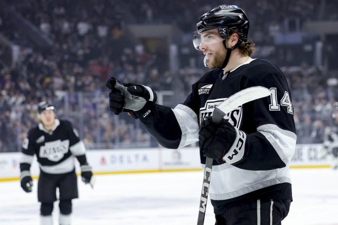Trevor Moore scored two empty-net goals and Anze Kopitar recorded an assist for the Kings in the 1,400th game of his career.