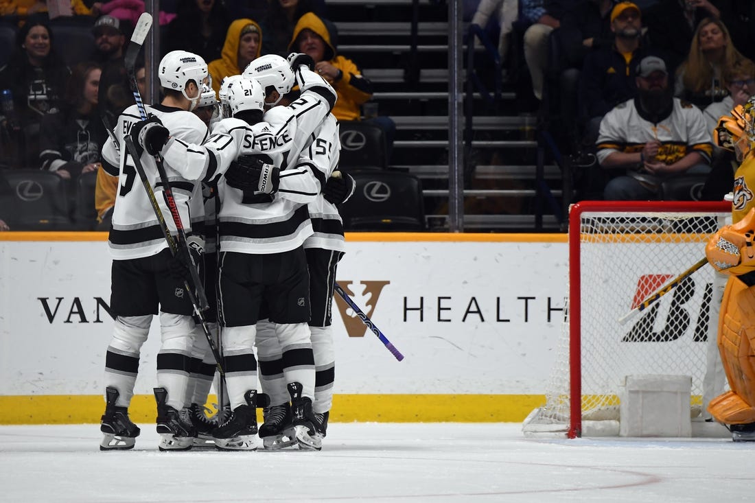 Alex Turcotte picked up his first NHL points with a goal and an assist as the visiting Los Angeles Kings beat the Nashville Predators 4-2 on Wednesday in the final game before the All-Star break for both teams.