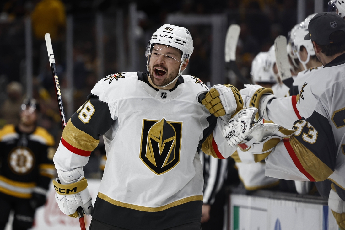 Hertl netted a turnaround wrister from the left circle past Boston’s Jeremy Swayman to win the game. Earlier on the same Golden Knights man advantage, Pavel Dorofeyev had a potential go-ahead goal overturned due to interference on Swayman.