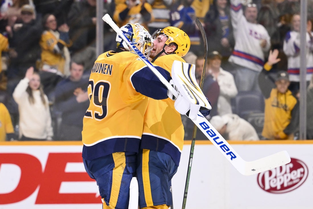 Predators goalie Juuse Saros allowed five goals on 21 shots before giving way to Justus Annunen in the second period. Annunen stopped all 13 shots he saw to get the victory, helping Nashville improve to 2-0-2 in the past four games.