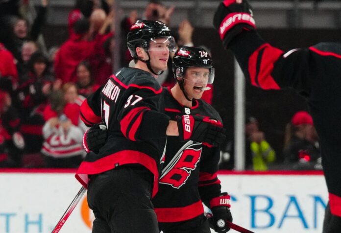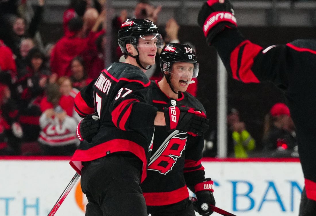 Aho’s 21st goal of the season came on a late power play and was assisted by Andrei Svechnikov and Jesper Fast. A postgame scrum between the teams followed.